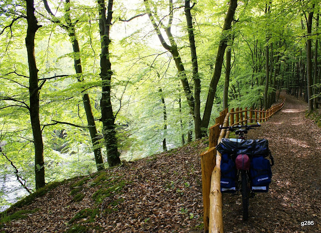 Rower obciążony sakwami na 1,5" oponach ciężko się prowadzi po plaży nie mówiąc o jeździe. Idę górą, "klifem" ale w pewnym momencie już się nie da, zrzucam rower na dół i prowadzę go brzegiem, jakieś półtorej godziny.